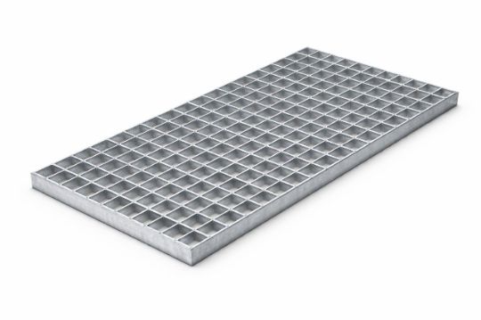 - Прессованный – изготовляется путем запрессовки связных стальных полос в несущие с предварительно подготовленными шлицами под давлением в 1650kN. После чего к решетке по краю под прямым углом приваривается обрамление. Такой способ обеспечивает равномерную и точную структуру ячеек.